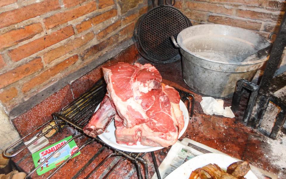 finally took my reservation at Nandone’s restaurant in Mugello! Despite the simple and authentic style of the place, it takes almost 4 months advance reservation for the ‘fireplace room’. This is a special room, fitting max 15 people, where the host, Paolo, will prepare a special fiorentina steak for your party under the ancient fireplace. As you arrive, the table is beautifully dressed and rich of side courses and appetizers that will enable you to relax, sit back and watch Paolo’s mastery in savouring and cooking a 2 inches large fiorentina steak.